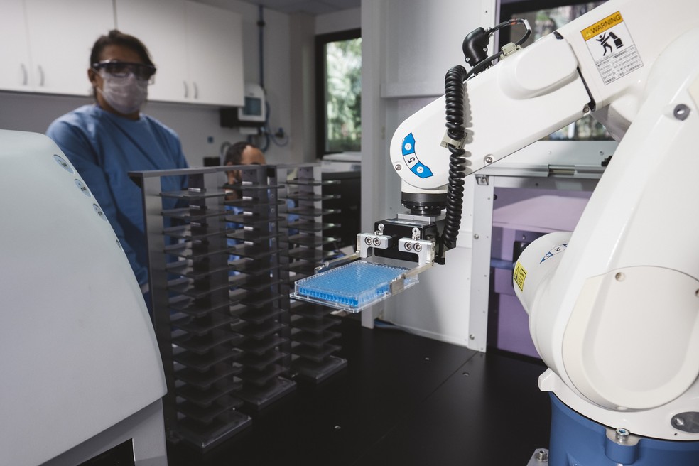 Antes de solicitar o conjunto de 200 moléculas da indústria, o pesquisador Artur Cordeiro conta que já desenvolvia há anos um trabalho de busca de moléculas para ação específica em uma enzima alvo do protozoário. Foram testados 30 mil componentes do banco do próprio CNPEM, em um laboratório de biologia automatizado, e em uma comparação virtual com resultados da farmacêutica, eles observaram semelhanças entre as moléculas.