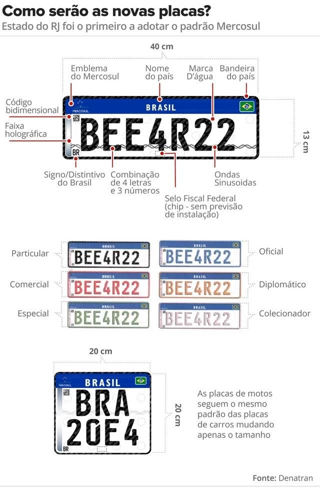 O Rio de Janeiro é o único estado que já estava emplacando, por isso passa a ter a obrigatoriedade de usar o novo padrão a partir desta segunda-feira (3). São Paulo, dono da maior frota do Brasil, deverá começar com as placas do Mercosul somente no último dia do ano.
