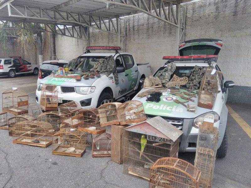 Além de, cinco potes de pólvora, uma caixa de espoletas, 25 aves da fauna silvestre, uma caça abatida, um teiú vivo e outro empalhado, uma ave empalhada, sete anilhas avulsas e diversos petrechos de caça.