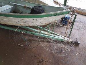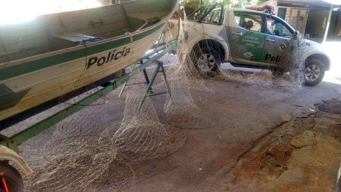 A equipe de patrulhamento embarcado composta pelos policiais CB PM GODOY e CB PM HEBERT, em patrulhamento pelo rio Mogi Guaçu no trecho do bairro Cascata, pelo município de Araras (SP), lograram êxito em localizar e apreender 04 (quatro) armadilhas do tipo “covo” ou “barduelo”, bem como 04 (quatro) redes de emalhar que totalizaram 54 (cinquenta e quatro) metros de comprimento, sendo que tais materiais foram recolhidos à sede do pelotão para a destinação adequada.