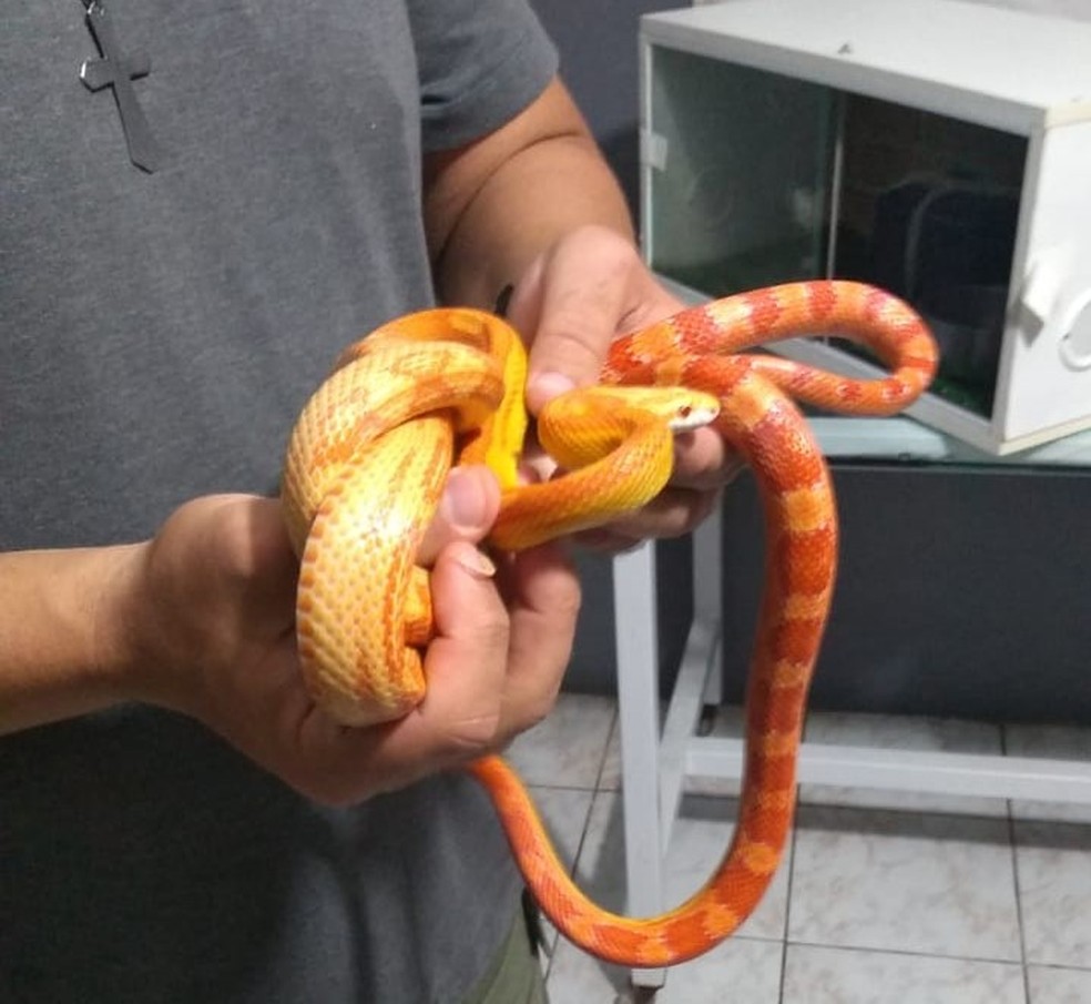 A Polícia Ambiental apreendeu nesta segunda-feira (14) três cobras que estavam sendo mantidas em cativeiro em Garça (SP). Segundo a polícia, durante a operação Força Ambiental, uma equipe recebeu a denúncia e compareceu ao endereço, onde realizou vistoria e constatou a manutenção em cativeiro de três cobras, duas da espécie corn snake e uma da espécie california king snake.