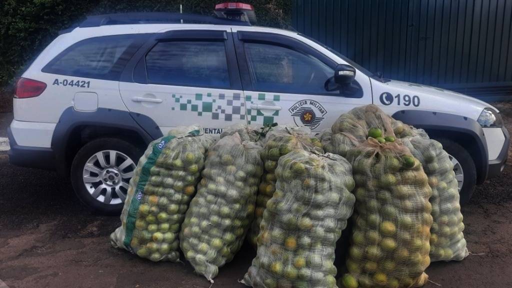 Policiais militares flagraram quatro pessoas furtando laranja na área rural de Ribeirão Bonito (SP) na manhã desta segunda-feira (1º). Cerca de 700 kg da fruta foram apreendidos em dois carros.