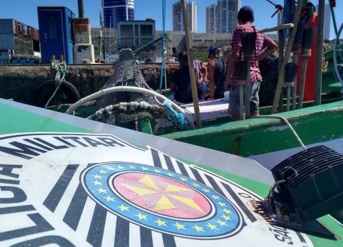 O barco, proveniente do Rio de Janeiro, foi flagrado em uma operação da polícia nesta quarta-feira (26), sendo localizado quando já atracava para descarga do pescado no Terminal Público de Pesca de Santos. A polícia abordou os nove tripulantes a bordo. Na vistoria, foi constatado que dois deles não possuíam a carteira de pescador, além de a embarcação estar com a licença de pesca vencida.