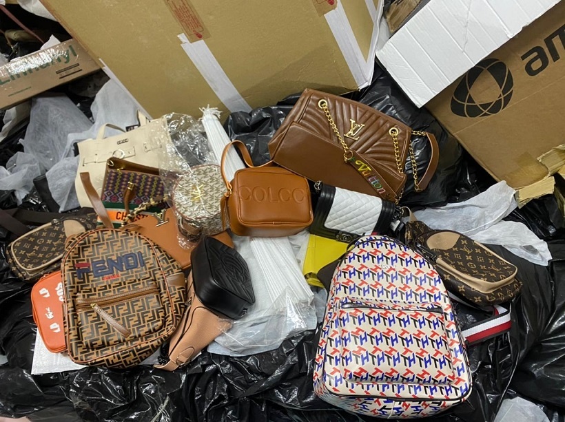 Foram apreendidas no local mais de 40 toneladas de material contrafeito, como bolsas, calçados e peças de vestuário. As diligências continuam nos autos de inquérito policial instaurado, mediante representação das marcas lesadas.
