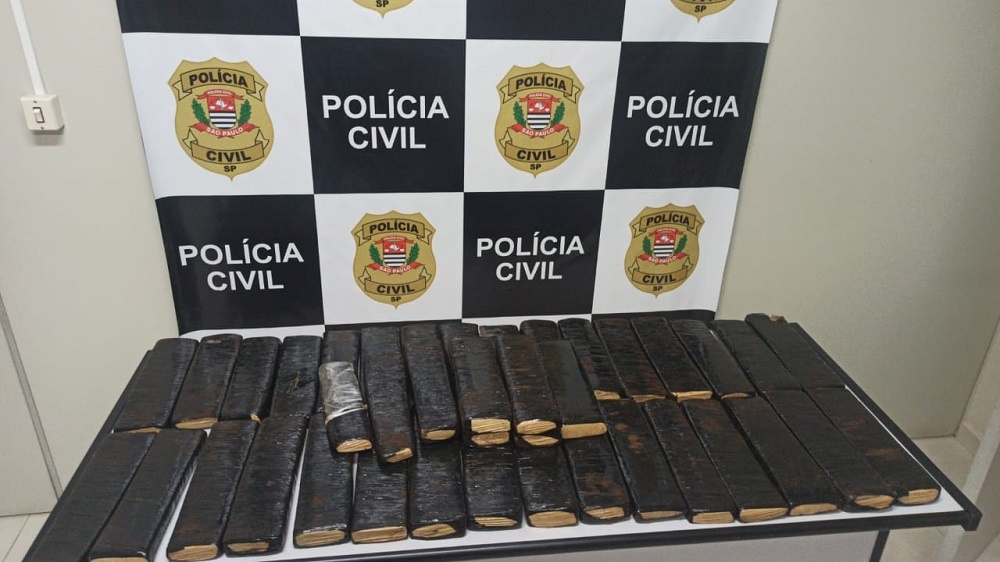 O trio foi abordado e revistado, no entanto nada de ilícito foi encontrado com os suspeitos. Em buscas dentro do veículo, no entanto, foram localizados 40 tijolos de maconha no porta-malas, somando 29,8 quilos.