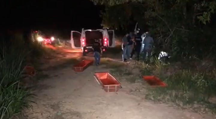 Ao chegar no local, os policiais militares constataram que os corpos eram de um homem e uma mulher e que estavam em avançado estado de decomposição. Os cadáveres aparentavam perfurações no corpo por arma de fogo.