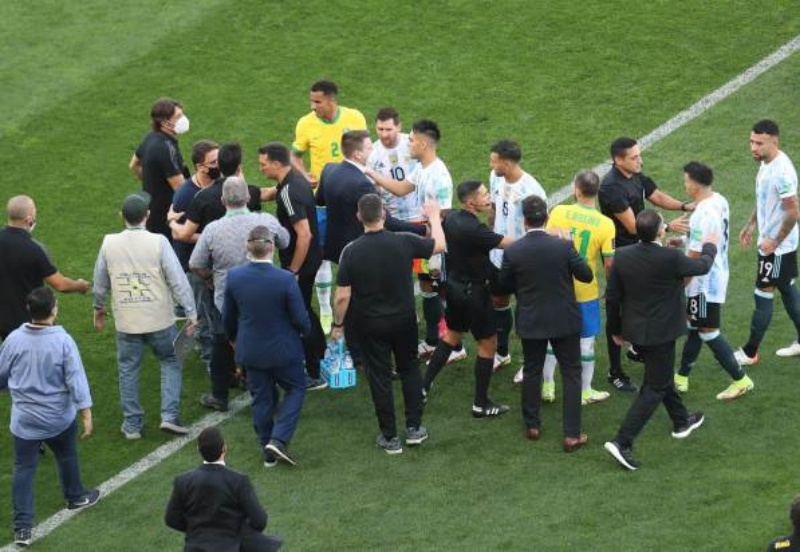 Com os dois times em campo, a partida foi paralisada domingo (5), após 5 minutos de seu início. A Agência Nacional de Vigilância Sanitária (Anvisa) já havia determinado que os jogadores argentinos fossem isolados no hotel e, posteriormente, deportados para a Argentina, mas a decisão não foi cumprida.