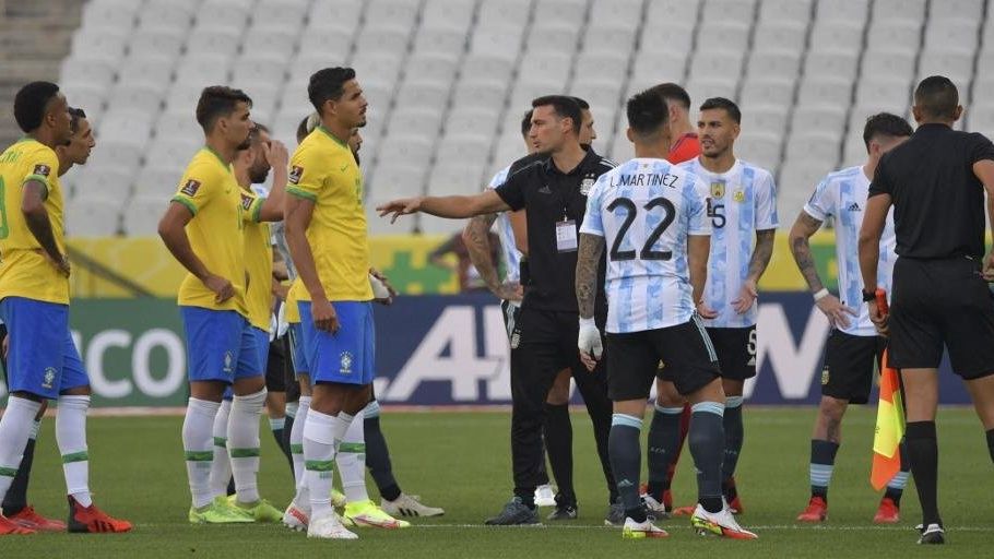 Com os dois times em campo, a partida foi paralisada domingo (5), após 5 minutos de seu início. A Agência Nacional de Vigilância Sanitária (Anvisa) já havia determinado que os jogadores argentinos fossem isolados no hotel e, posteriormente, deportados para a Argentina, mas a decisão não foi cumprida.