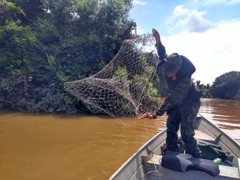 A armadilha estava disposto no ambiente aquático, emanando assim considerável nocividade à fauna ictiológica nativa, sendo que ao mesmo caberá a devida destinação em local adequado e data oportuna. A pesca está proibida até 28 de fevereiro devido à Piracema, época de reprodução dos peixes.