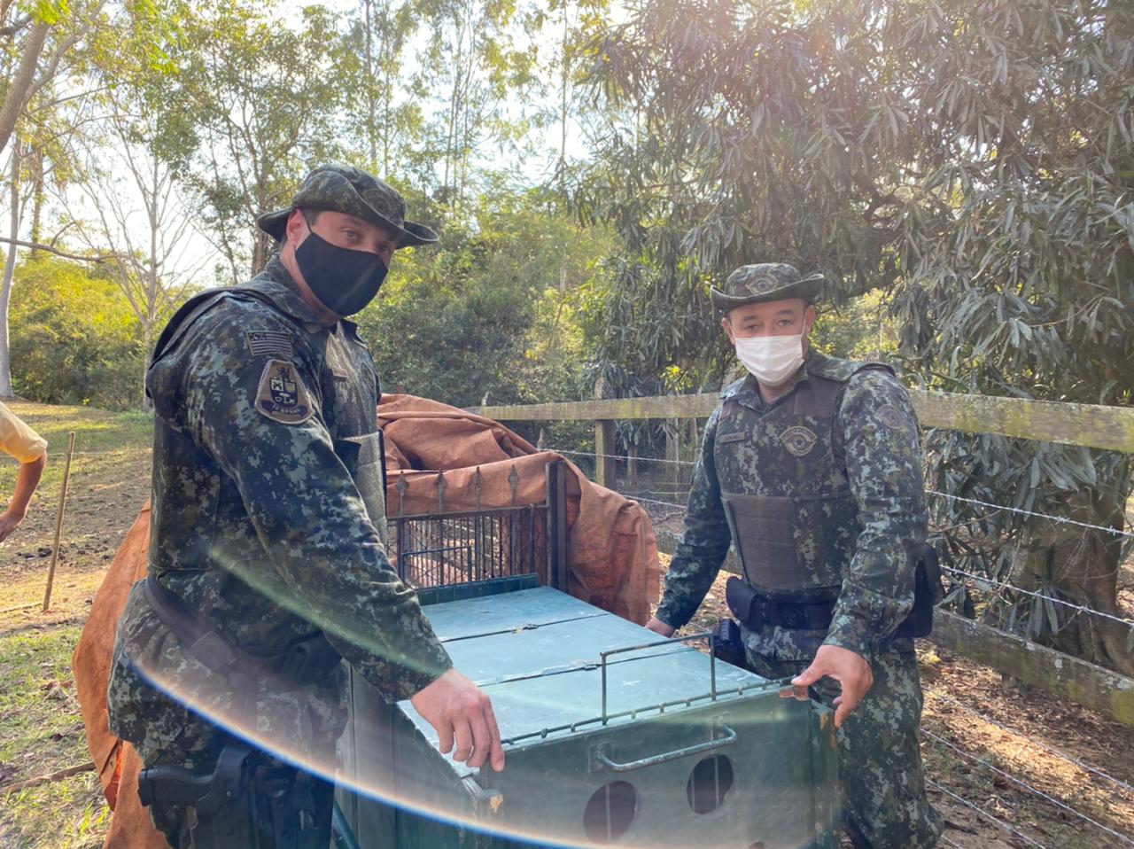 Na noite de terça-feira (6), os policiais militares ambientais cabo Melo, cabo Cunha, soldado Belchior e soldado Colombo, estiveram em apoio à representantes da Associação “Mata Ciliar” com sede em Jundiaí (SP) especializados em felinos de grande porte, para realização do resgate de uma onça-parda (macho) com estimativa de cinco anos.
