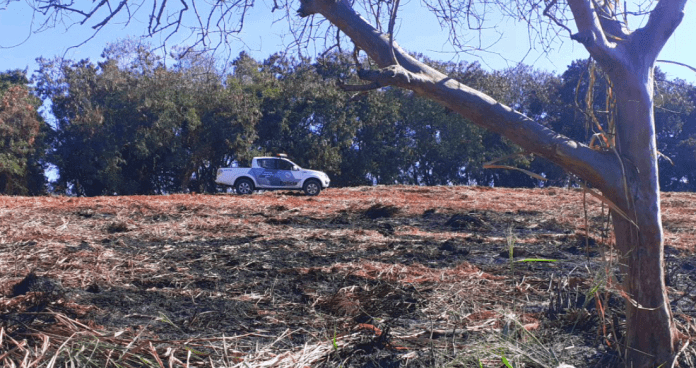 Diante dos fatos, uma equipe da Polícia Militar Ambiental, composta pelo cabo De Melo, cabo Vanderlei e cabo Elias, foi até o local, zona rural do município, onde constatou durante fiscalização a supressão de 50 arbóreos inseridos em área comum, sendo que 12 daqueles ainda foram submetidos ao uso de fogo pelo infrator.
