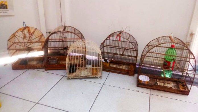 Na tarde de quarta-feira (3) os policiais ambientais cabo Vanderlei e soldado Elias, estavam foram acionados em apoio a Patrulha Rural do Policiamento Territorial de Mogi Guaçu (SP), que surpeendeu dois indivíduos de posse de sete aves da fauna nativa brasileira mantidas em cativeiro sem autorizaçao do órgão ambiental campetente, sendo um bigodinho (sporophila lineola), cinco coleirinho papa capim (sporophila coerulescens ), e um galo da campina (pararia dominicana).