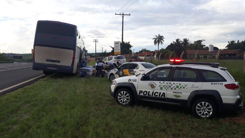 Foi solicitado apoio da Polícia Militar Ambiental que realizou as Autuações, bem como, providenciou a soltura dos pássaros. Houve apoio da equipe Apoio TOR – Tático Ostensivo Rodoviário, composta pelo cabo Caetano e soldado Félix, na vistoria do ônibus, bem como na condução de partes e objetos ao plantão da Central de Polícia Judiciária de Leme (SP), onde foram elaborados os autos de Prisão em Flagrante Delito de Tráfico de Drogas, TCO/PC de Crime Ambiental, RDO de Averiguação de Porte Ilegal de arma de fogo, Apreensão de objeto (Placas) e Descaminho.