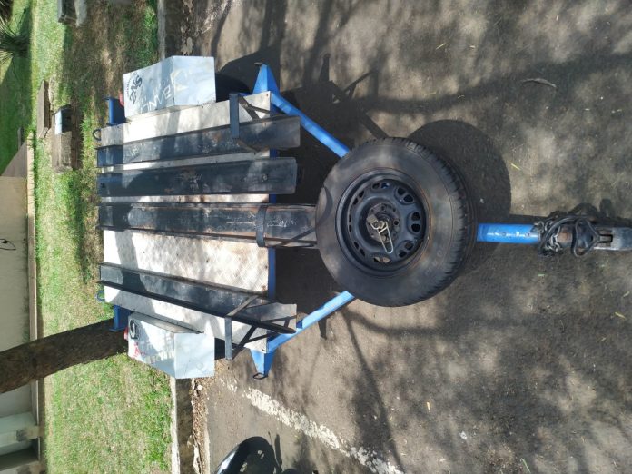 Durante a fiscalização dos veículos foi contatado que o reboque possuía placa porém estava com lacre violado e oculto, verificou se que não possuía numeração de chassi para sua legítima identifição, bem como o condutor não sabia informar de quem havia comprado e a documentação em nome de terceiro.