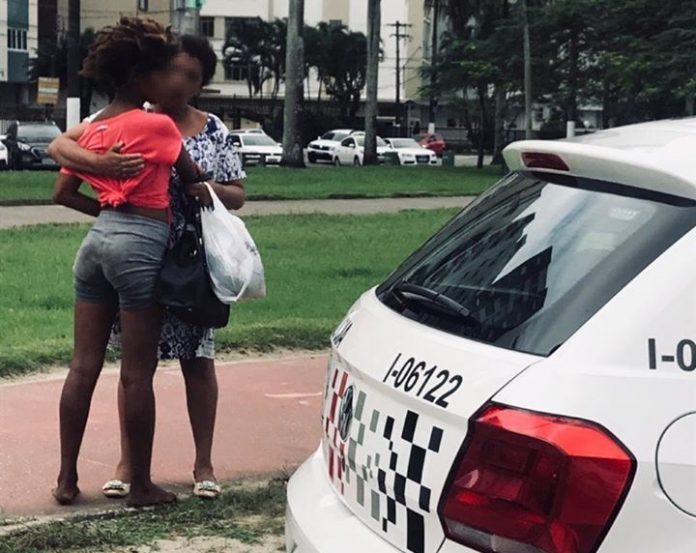 Durante a ação, quando passaram pela Praça Vereador Luiz Lá Scala, no bairro da Ponta da Praia, avistaram a filha que a mãe buscava promovendo esse momento emocionante. Que dessa vez mãe e filha se acertem é que tenham um recomeço em família.