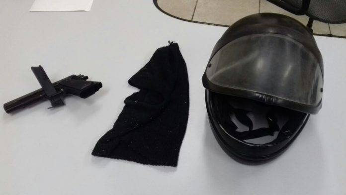 A vítima reagiu, com isso assustou o marginal que saiu correndo abandonando o aparelho no local. A Polícia Militar foi acionada e durante patrulhamento os policiais Corrêa e Seregati, se depararam com o mesmo, que ao perceber que seria abordado correu, mais acabou sendo detido com o simulacro, no momento em que tentava dispensar.
