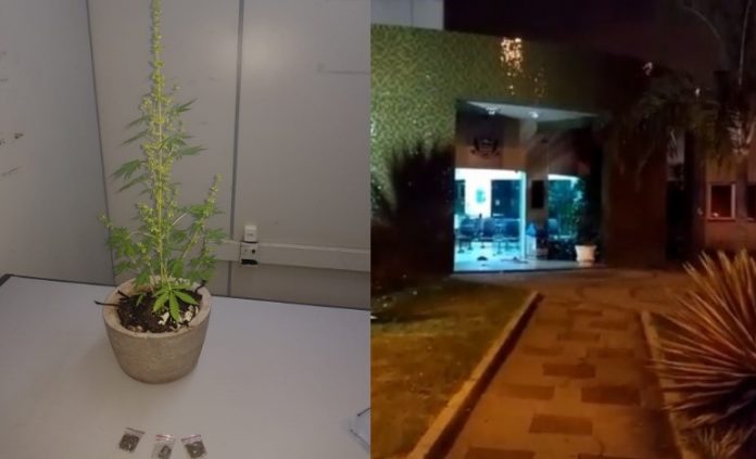 Os policiais militares cabo Leandro e cabo Marco Antônio, durante atendimento de uma ocorrência pelo centro de Araras (SP), receberam informações que na residência havia um vaso com um pé de maconha, identificado a planta de aproximadamente 40 cm.