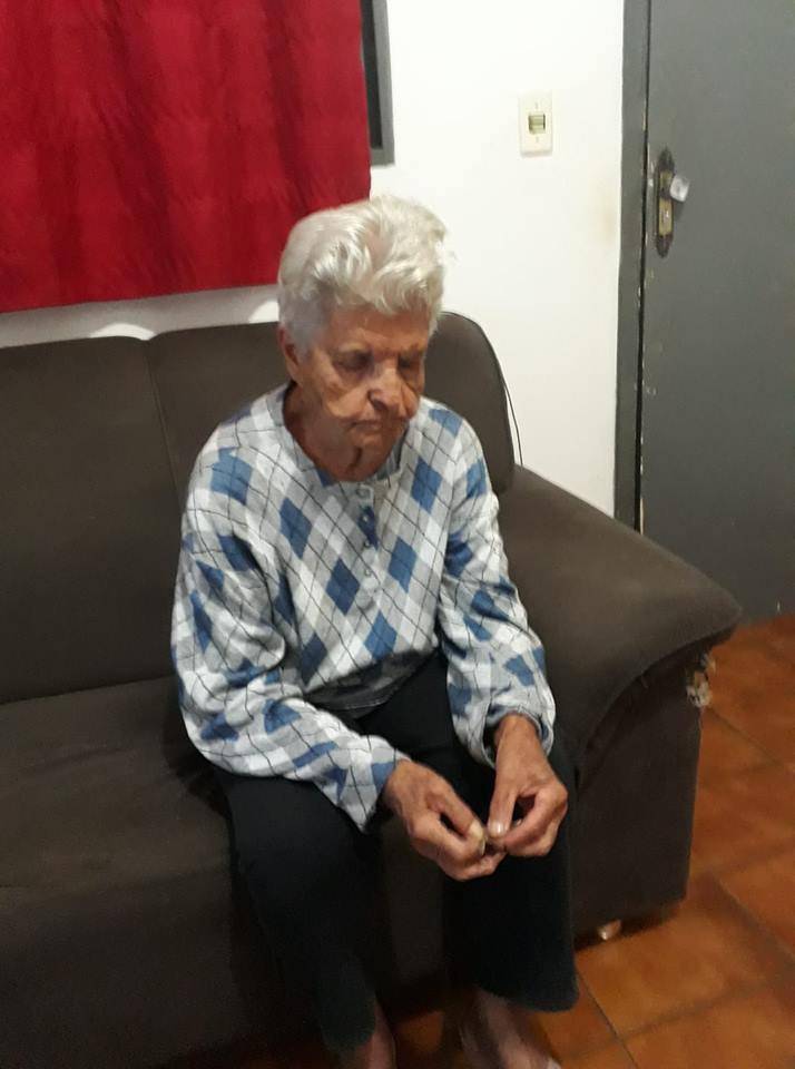 Em patrulhamento os policiais encontraram a residência toda aberta, e pode ser constatado que a cuidadora Mercedes Lucredi Trevisan, e não percebeu que dona Maria saiu sem avisar e por sofrer de Alzheimer acabou se perdendo. A mesma foi entregue à cuidadora e está bem.