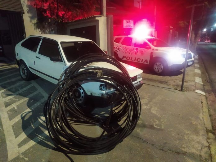 O detido, que já possuí extensa ficha criminal quando adolescente, agora estando com 19 anos de idade, confessou a participação no furto, indicando os nomes dos comparsas e onde estaria o veículo que utilizaria para fugir com os cabos elétricos furtados. Foram recuperados todos os cabos elétricos cortados para a subtração e estão avaliados em aproximadamente R$ 32.000,00 (trinta e dois mil reais).