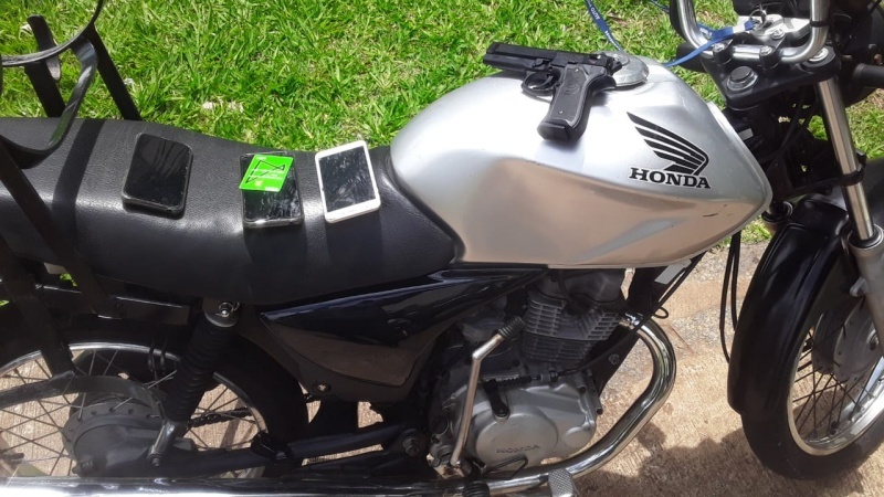 Imediatamente os policiais militares cabo Rômulo e cabo Roberto (ROCAM), foram para o local quando pela avenida avistaram dois indivíduos saindo com uma motocicleta (roubada), inciando acompanhamento. No cruzamento com Avenida Dona Renata, o condutor da moto perdeu o controle e ambos caíram e se dividiram, cada um foi para um lado.