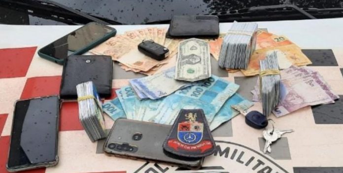 De acordo com a Polícia Militar, foram encontrado no total, 120 cartões, adesivo contendo a senha de acesso, além da quantia de R$ 2.138,00 em dinheiro, provavelmente de saques do auxílio emergencial. Os criminsos receberam voz de prisão em flagrante, e foram conduzidos ao 2º Distrito Policial.