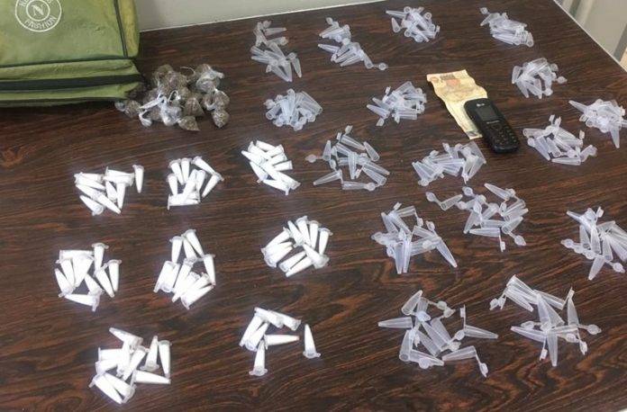 Na tarde desta sexta-feira (27), equipes da Polícia Militar realizaram uma diligência no Condomínio Victório Corrochel, onde detiveram um rapaz por tráfico de drogas. Pinos de cocaína, dinheiro e um celular foram apreendidos no local.