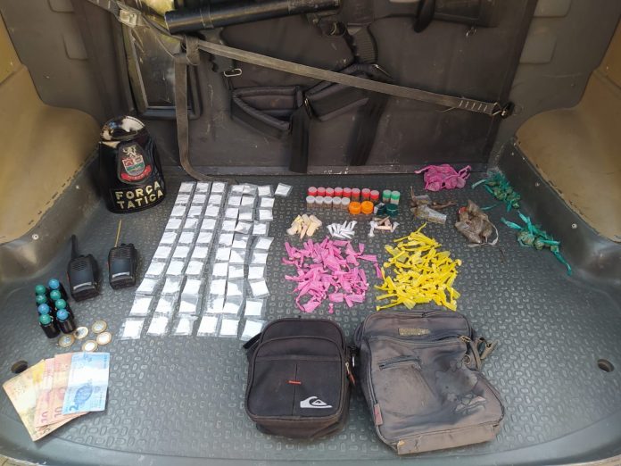 Em revista pessoal localizado em suas vestes (por debaixo da blusa) uma sacola contendo substâncias análogas a entorpecentes (Maconha, Cocaína, Crack) além de certa quantia em dinheiro e 2 (dois) Rádios Comunicadores. O criminoso foi encaminhado para 1° Distrito Policial de Mauá (SP), onde permaneceu à disposição da Justiça.