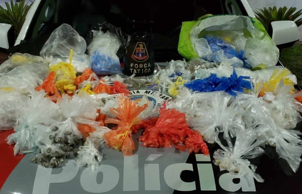 Após abordagem e vistoria veicular, foram localizadas no banco traseiro do veículo, três bolsas contendo diversas substâncias entorpecentes prontas para comercialização, totalizando 580 porções de maconha, 801 porções de cocaína e 1632 pedras de crack. A ocorrência foi encaminhada ao 6º Distrito Policial.