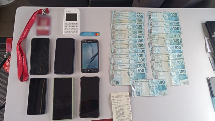 De posse das características, os militares foram ao encalço dos criminosos, logrando em localiza-los, porém ao perceberem a presença policial empreenderam fuga, entrando em dois veículos, sendo detidos em posse do dinheiro, um crachá com foto do abordado, uma máquina de cartão por aproximação, cinco aparelhos celulares. Conduzidos ao 2º Distrito Policial, ocorrência em andamento.