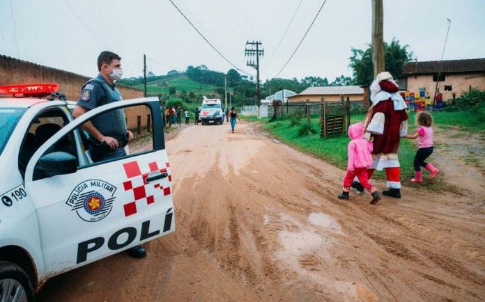 Juntamente com o Papai Noel (soldado PM Rodrigues) os policiais levaram um pouco de esperança, calor humano, espírito natalino e dignidade humana, um dos motes nos 189 anos de nossa Instituição, que serve e protege os brasileiros e estrangeiros na “Terra dos Bandeirantes”.