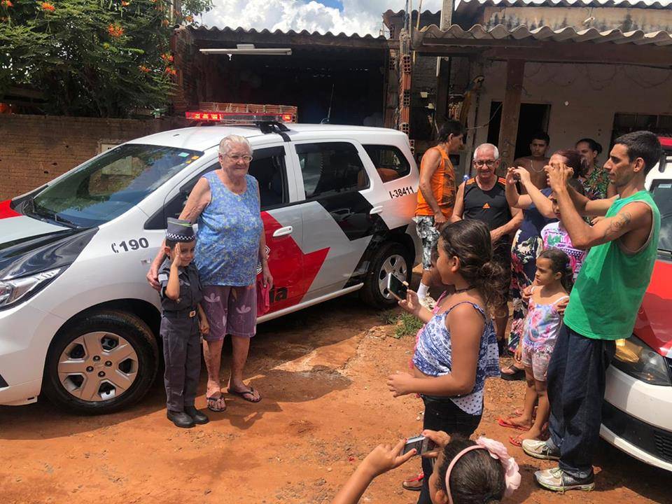 Com a ajuda de vários colaboradores e de outros policiais, foi então realizada a festinha de aniversário, onde os policiais juntamente como Cabo PM Emerson chegaram na casa de João Miguel com as viaturas com a sirene e giroflex ligado, tudo para homenageá-lo onde ele já aguardava “os seus heróis” vestido a caráter.