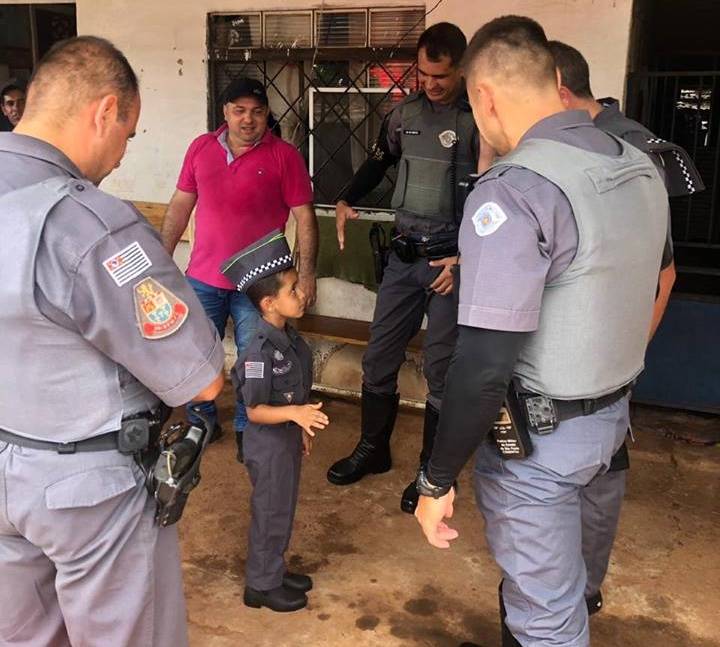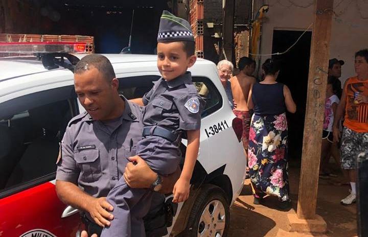 Policiais Militares da 4ª Cia do 38º BPM/I na cidade de Porto Ferreira (SP), proporcionaram uma festa de aniversário de 5 aninhos ao pequeno João Miguel morador no Jardim Anésia II, com direito de até ganhar de presente uma “fardinha”.