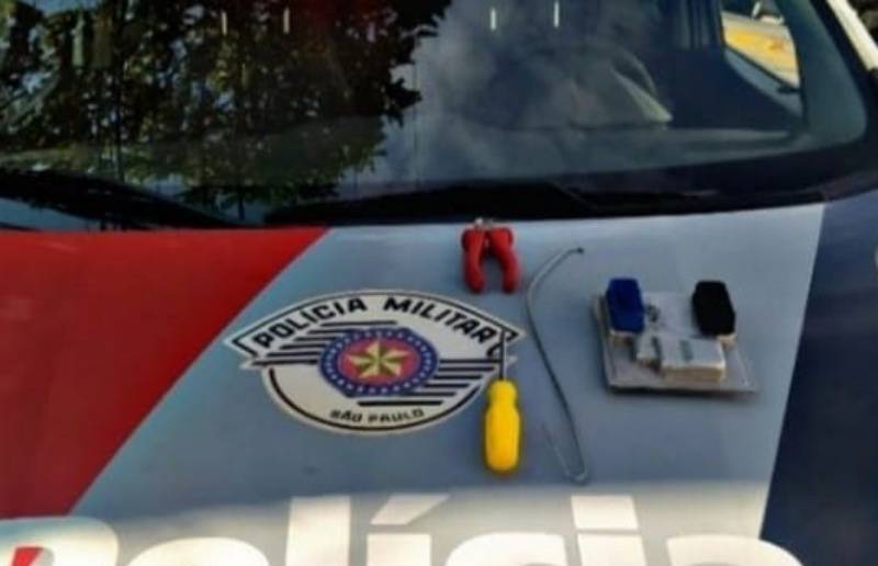 No automóvel, estava acoplado um módulo e em seu interior também foi localizado ferramentas para prática delituosa.