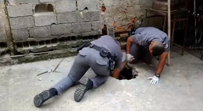 Na tarde de sábado (5), uma equipe do 38º Batalhão de Polícia Militar Metropolitano foi até a Rua Rua Waldemar Lapietra, em São Matheus (SP), averiguar o possível pedido de socorro que vinha de uma tubulação de esgoto.