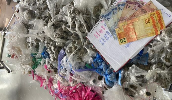 Em posse do infrator havia grande quantidade da substância, tendo ele revelado aos policiais militares que seriam distribuídas durante a semana. Foram apreendidas 1510 porções de maconha, 700 porções de crack e 8 porções de cocaína, totalizando aproximadamente 2,5 Kg de drogas, além de um caderno de anotações.