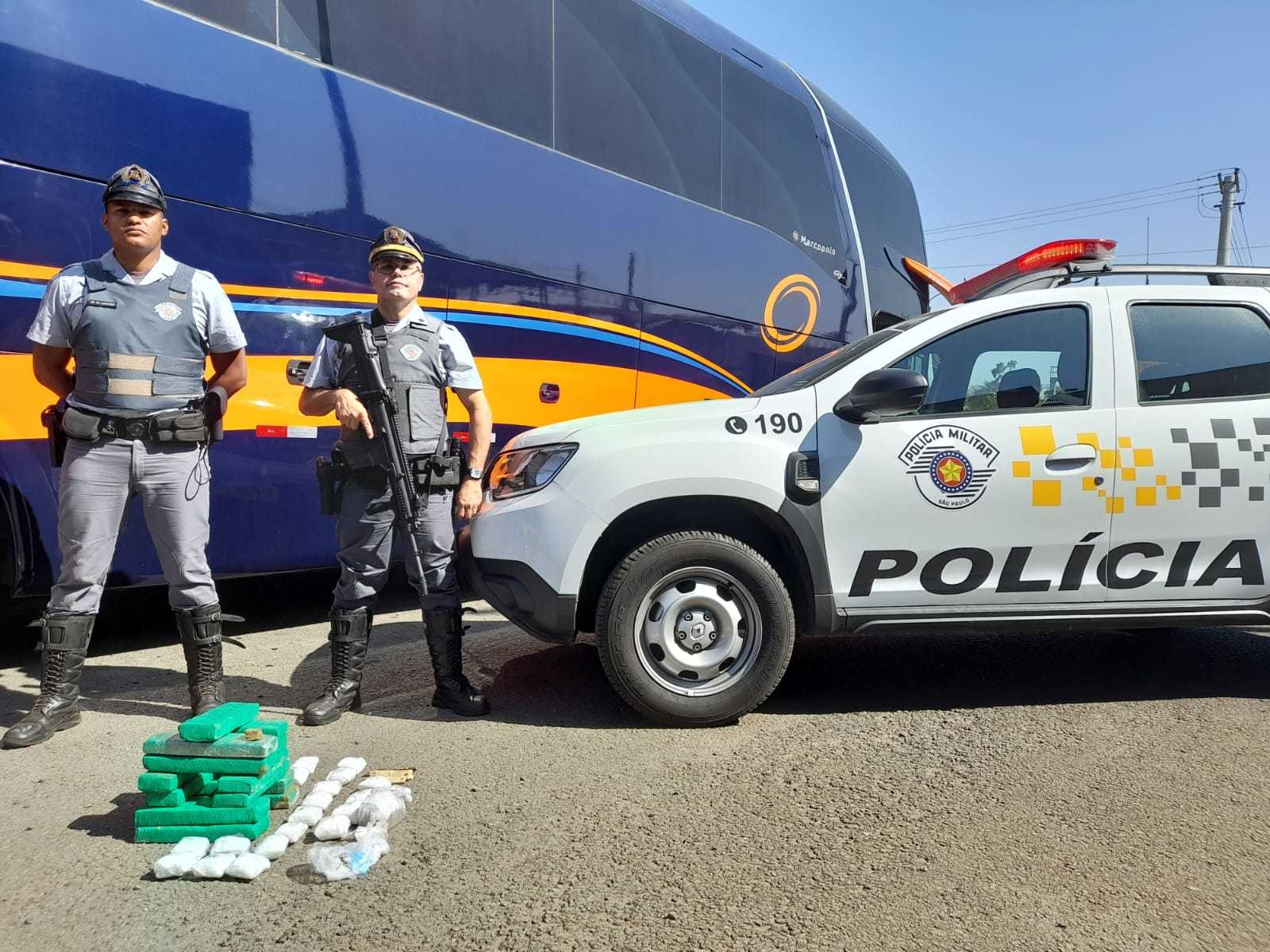 De acordo com informações, a equipe abordou um ônibus da empresa Orleide Turismo, autorizada pela TransBrasil, e localizaram em posse de um dos passageiros, uma mala contendo 13 tabletes de maconha, e diversos papelotes de cocaína. Com outro passageiro foi localizado uma mala contendo diversos pacotes com drogas diversas, cocaína maconha e crack.