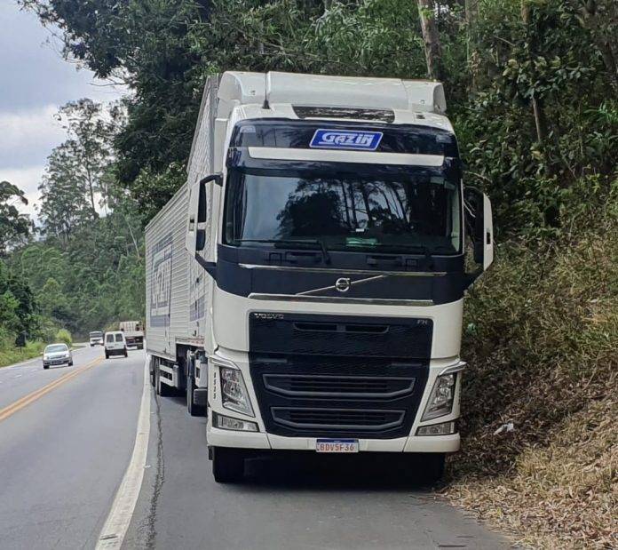 Na manhã de sexta-feira (7), os policiais militares rodoviários cabo R. Lopes, soldado Cristiano e soldado Jéssica, estavam em patrulhamento Tático Ostensivo Rodoviário pela Rodovia Edgard Máximo Zambotto (SP-354), quando receberam informações por meio da rede de rádio do COPOM sobre roubo de um caminhão pela rodovia, e acabaram se deparando pelo km 50,200 com o Volvo/FH 460, cor branca, atrelado a dois semi reboques.