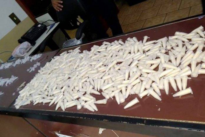 Mais de 500 pinos de cocaína foram localizados na ação.