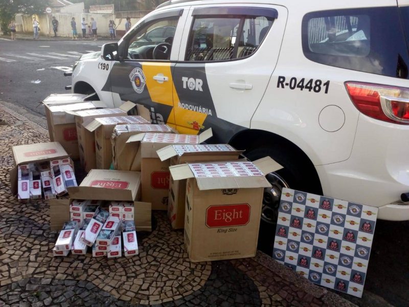 Na tarde deste domingo (17), a equipe de TOR – Tático Ostensivo Rodoviário composta pelo 2° Sgt PM Sedano, Sd PM Neto e Sd PM Ribeiro, em patrulhamento pela Rodovia Anhanguera (SP-330), abordou um Ônibus da Empresa “Transbrasil”, com itinerário São Paulo a Piauí, e ao efetuar a vistoria no compartimento de passageiros, localizou atrás do última poltrona, 10 caixas de cigarros, que contém 10.000 maços de cigarro da marca “Eight” oriundos do Paraguai.