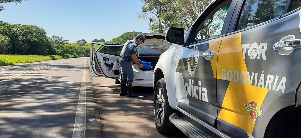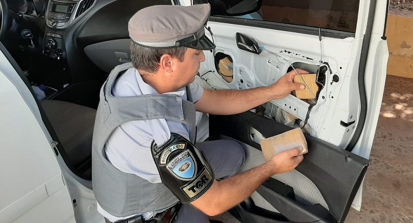 Durante fiscalização, o motorista e passageiro apresentaram nervosismo e não souberam responder o motivo da viagem. Ao revistarem o carro, os PMs encontraram a droga, dentro do porta-malas e escondidos em fundos falsos na lataria.