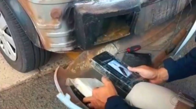 Os 20 tabletes da droga estavam em um fundo falso do para-choque traseiro de um carro com placas de São Paulo. Segundo a PRF, o cloridrato é o primeiro produto obtido após o refino da pasta base de cocaína e é misturado a outras substâncias para ser revendido para os consumidores.