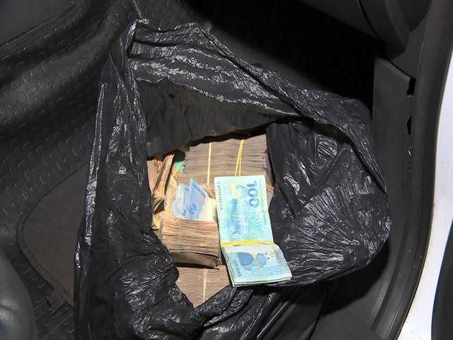 O dinheiro, em sua maioria notas de R$ 5, R$ 10 e R$ 20, estava dentro de um saco plástico. O motorista de 46 anos, que era procurado por assalto a banco e estava portando um documento falso, foi preso.