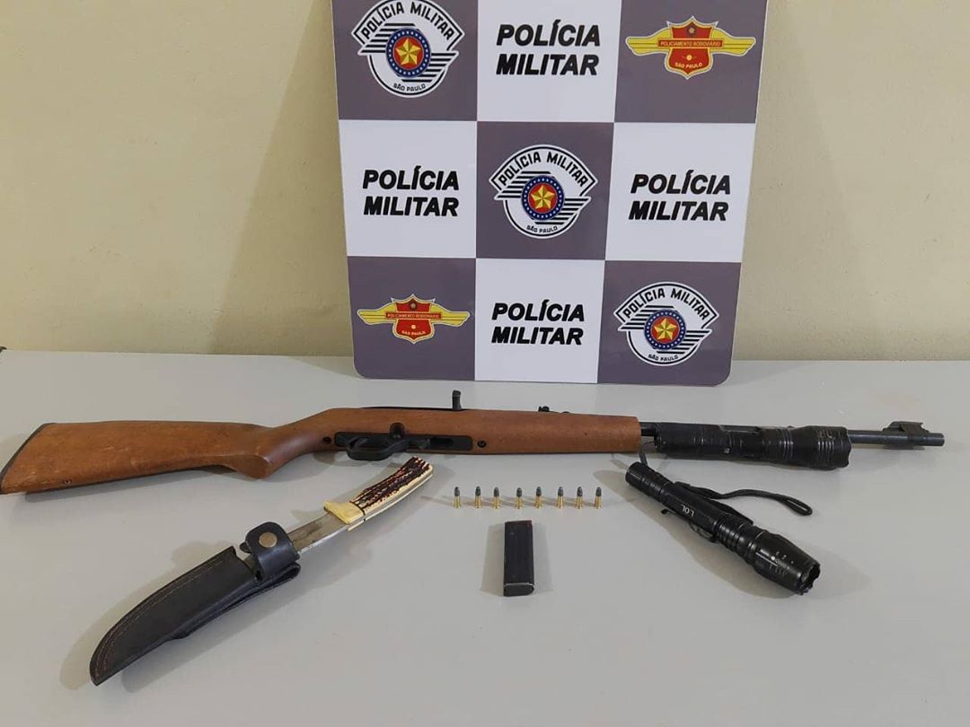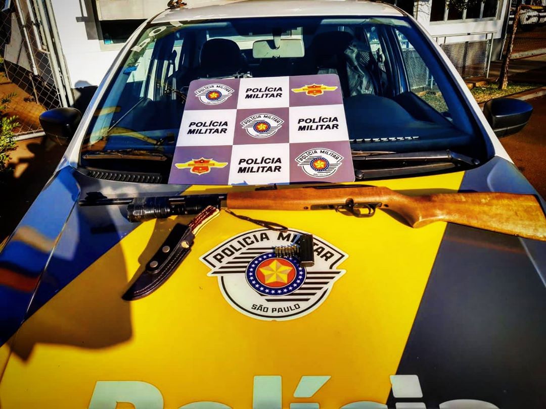 Momentos depois a mesma equipe, desconfiou de um indivíduo conduzindo uma caminhonete GM/S10 e, durante a busca veicular, localizaram atrás do banco traseiro, dentro de um saco plástico, 01 (uma) Arma de Fogo da Marca CBC MAGTECH, Modelo 7022 – Cal. 22 e um carregador com 08 munições intactas sem o devido registro legal, além de 01 (uma) arma branca (faca), o que resultou na prisão do mesmo pelo crime de porte ilegal de arma de fogo.