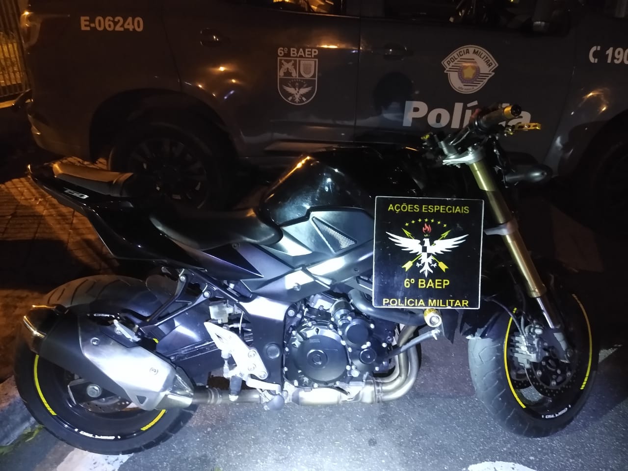Na madrugada desta sexta-feira (25), policiais militares do 6 ° BAEP – Batalhão de Ações Especiais de Polícia, estavam em patrulhamento tático pelo município de Diadema (SP), quando pelo cruzamento das ruas Espiga com Velhos Marinheiros, no Jardim Inamar, visualizaram uma motocicleta Suzuki GSX 750 Preta sem emplacamento ocupada por um indivíduo.