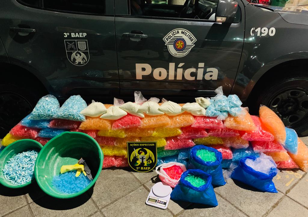 Os PMs realizaram acompanhamento e conseguiram detê-lo. No imóvel foram encontrados 3.884 porções de cocaína prontas para comercialização, 56 mil embalagens, uma balança de precisão e duas bacias utilizadas para preparar as drogas.