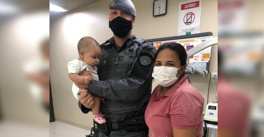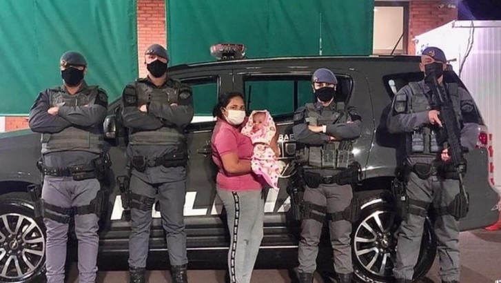 A mulher contou à PM que a menina havia engasgado com leite. A Polícia Militar informou que um soldado da equipe realizou manobras de primeiros socorros e a bebê retomou a respiração. Ela foi levada ao hospital, onde recebeu atendimento médico e foi liberada.