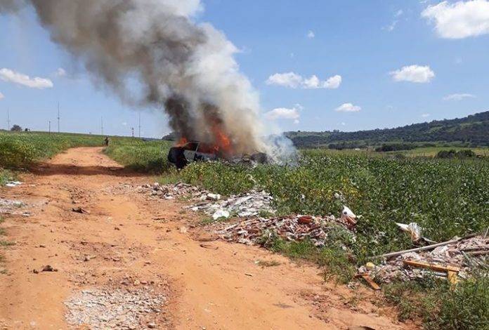 Populares flagram veículo em chamas em Limeira, SP