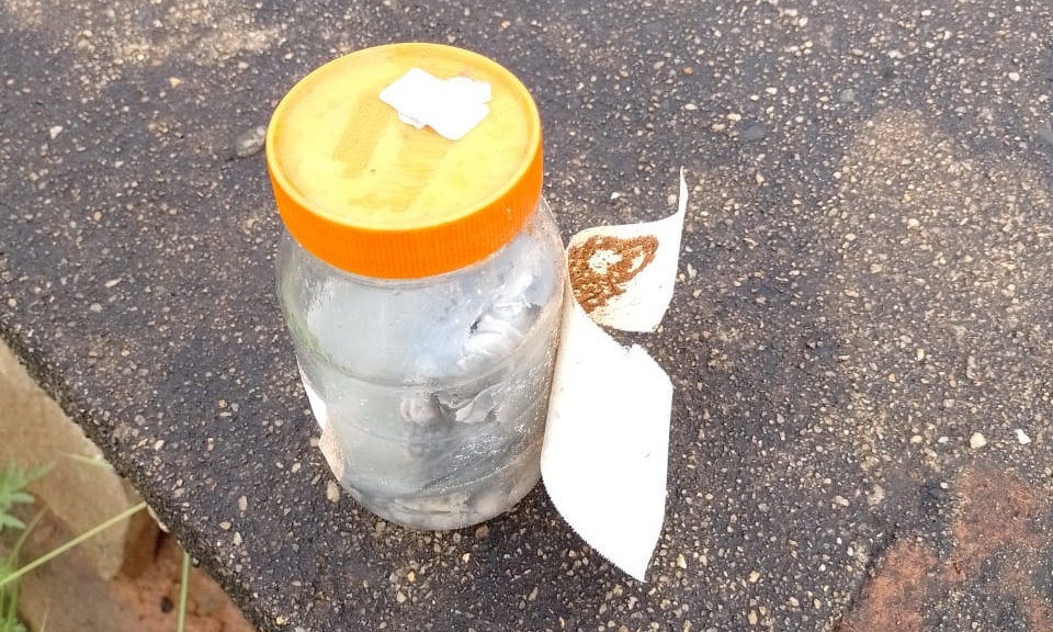 Imediatamente a equipe que estava em patrulhamento pelo município foi para o local, onde foi informada que o vidro foi encontrado em cima de um dos túmulos pelo pessoal da limpeza. A tampa possuía uma etiqueta com uma numeração, o que chamou a atenção dos policiais.