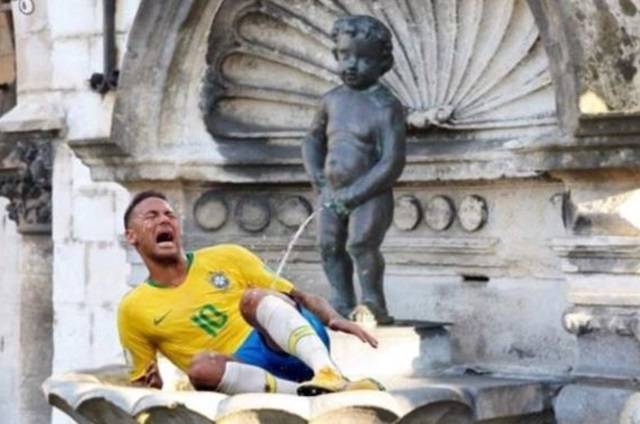 Para comemorar a vitória por 2 a 1 da Bélgica contra o Brasil na Copa do Mundo, o prefeito de Bruxelas, Philippe Close, resolveu publicar esta frase junto a uma montagem que mostra uma estátua urinando sobre uma foto de Neymar caído no chão e chorando.