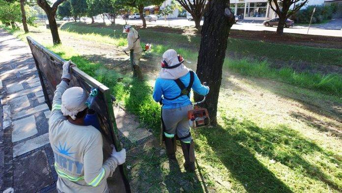 Aproximadamente 30 pessoas fazem parte da equipe da Secretaria Municipal de Serviços Públicos Urbanos e Rurais, que trabalha com tratores e roçadeiras para fazer o serviço.